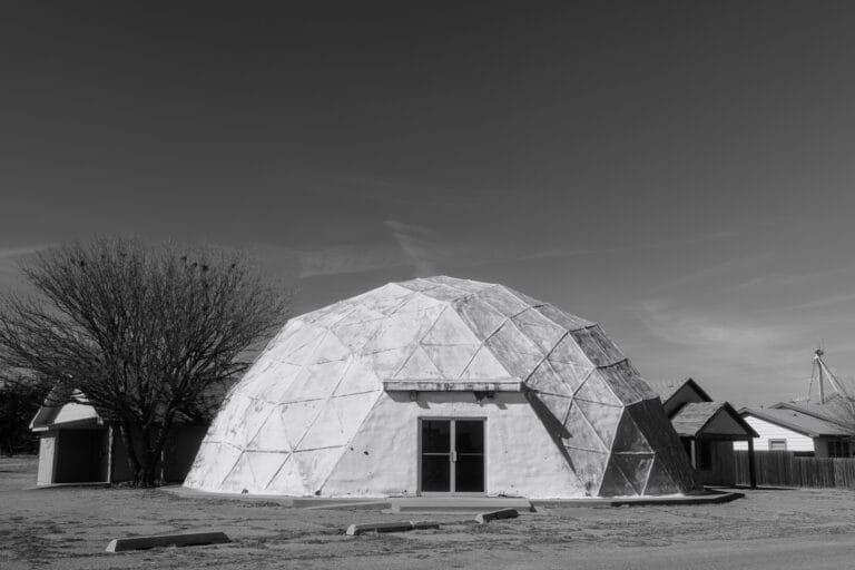 Image of a white geodesic dome resting on flat ground like an artifact from a future that never arrived. Utopia doesn’t always recede; sometimes it becomes an iconic form. The geometry is declarative, almost didactic—a structure that believes in efficiency,…